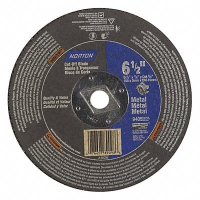 Abrasive Cut-Off Wheel Abrasive Material Aluminum Oxide Grit 24 Connector Size 5/8 in Connector Type Diamond Knockout Overall Diameter 6 1/2 in Overall Thickness 0.125 in Compatible Tool Type Circular Saw Primary Material Applicationn Steel Series Metal Wheel Type Type 1 Maximum Operating Speed 9 405 RPM Reinforced Status ReinforcedMRO25TY88