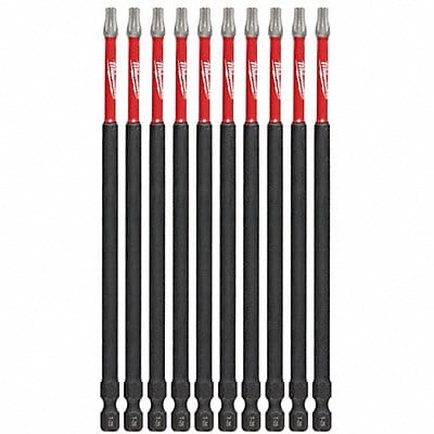 Power Bit Application - Tools Impact Fastening Tool Tip Size T25 Hex Shank Size 1/4 in Overall Bit Length 6 in Bit Style Torx(R) Shank Style Hex Fastening Tool Material S2 Steel Single End/Double End Single End Includes (10) T25 6 in Insert Bits SAE or Metric SAE Impact Rated Yes Finish Black Phosphate Power Bit Package Quantity 10