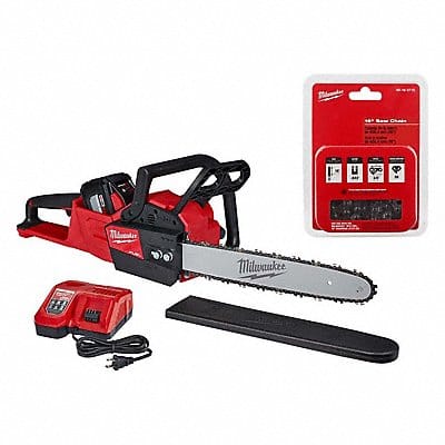Battery-Powered Chainsaw Kit Product Type Cordless Chainsaw Kit Power Source Cordless Bar Length 16 in Handle Location Rear Handle Chain Oiler Automatic Tool Weight 13.9 lb Number of Batteries to Operate 1 Battery Capacity 12.0 Ah Bare Tool/Battery Included Battery Included Battery Platform M18(TM) REDLITHIUM(TM) Number of Batteries Included 1 Number of Chargers Included 1 Motor Type Brushless Equivalent Gas Engine Displacement 40 cc Voltage 18 V Tool Height 10 in