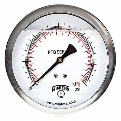 Industrial Pressure Gauge Nominal Dial Size 4 in Accuracy +/-1.5 Percent Gauge Case Material 304 Stainless Steel Process Connection Type NPT Process Connection Gender Male Lens Material Polycarbonate Process Connection Size 1/4 in Field Fillable Yes Process Connection Location Bottom Case Color Metallic IP/NEMA Rating IP65 Primary Pressure Range 0 to 1 000 Dry Dampening Feature None Vibration Resistance Field-Fillable Dial Color WhiteMRO491F45