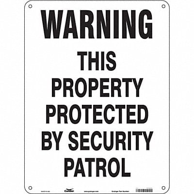 66436f7ba8f8947a065aaeb6Safety Sign 24 in x 18 in AluminumSecurity Sign Vertical Rectangle Number of Printed Sides 1 English Sign Legend Warning This Property Protected By Security Patrol Sign Legend Background Color White Sign Legend Style TextMRO453R86