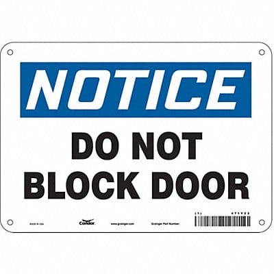 Safety Sign Vertical Rectangle Number of Printed Sides 1 English Sign Format Traditional OSHA Sign Legend Do Not Block Door Sign Legend Background Color White Sign Legend Style TextMRO471Y23