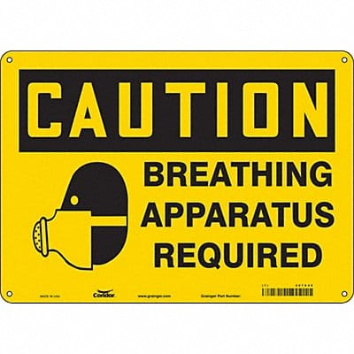 Safety Sign Vertical Rectangle Number of Printed Sides 1 English Sign Format Traditional OSHA Sign Legend Breathing Apparatus Required Sign Legend Background Color Yellow Sign Legend Style Symbol and TextMRO467X49