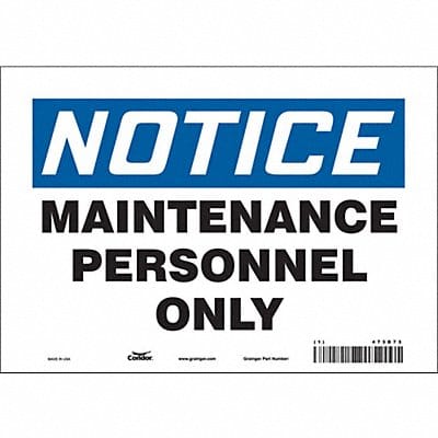 Safety Sign Vertical Rectangle Number of Printed Sides 1 English Sign Format Traditional OSHA Sign Legend Maintenance Personnel Only Sign Legend Background Color White Sign Legend Style TextMRO473D73