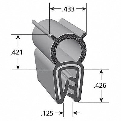 Seal Application Boat Hatch Seal RV Compartment Door Seal Tonneau Cover Seal Tool Box Seal Color Black For Material Thickness 0.125 in Material Vinyl Maximum Operating Temperature 212 Degrees F Minimum Operating Temperature -40 Degrees F Outside Edge Trim Width 7/16 in Overall Height 7/8 in Overall Length 25 ft Overall Width 7/16 in Profile Shape Trim Standards UL ListedMRO44M848