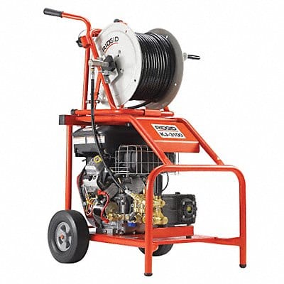 Water Jetter Drain Cleaning Machine Power Source Gas-Powered Maximum Drain Line Inside Diameter 10 in Minimum Drain Line Inside Diameter 2 in Hose Length Included - Hose A 50 ft Hose Length Included - Hose B 200 ft Maximum Jet Pressure 3 000 psi Maximum Flow Rate 5.5 gpm Number of Nozzles 3 Horsepower 16 hp Fuel Tank Capacity 1 gal Application Blasting Through Sludge Soap and Grease Blockages Fuel Type Gasoline Hose Diameter Included - Hose A 3/8 in